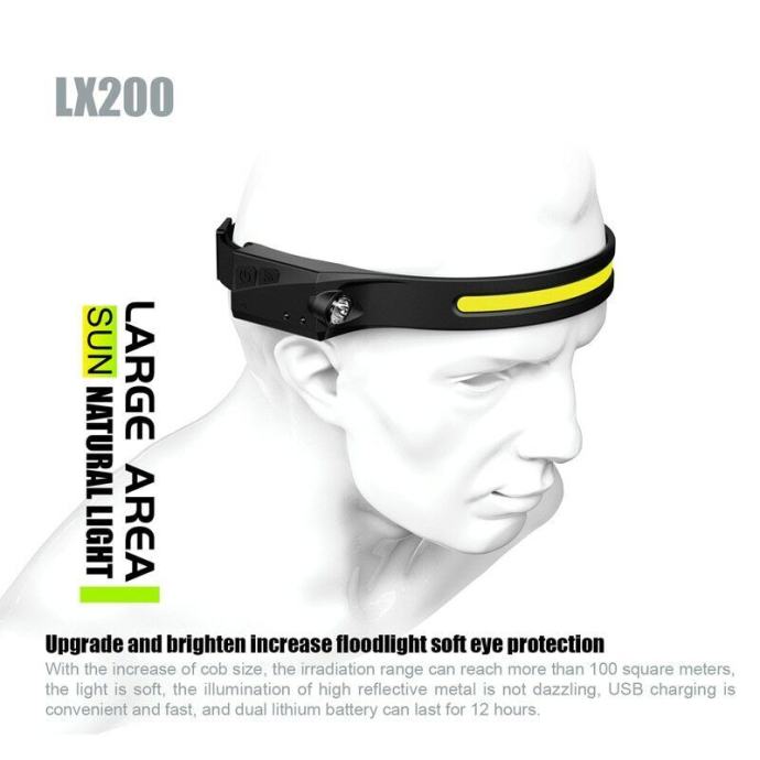 Lovačka verzija naglavne svjetiljke LX 200 sa visokosjajnom bijelo COB LED trakom i boćnim zelenim XPE LED reflektorom. Jako lagana, jako svjetlo (podesivo u 5 stupnjeva), paljenje na gumb ili na prolaz rukom pokraj senzora, vodootporna, flaksibilna. Gumena traka s prednje strane, podesiva elastična traka sa stražnje strane. Može se nositi na glavi ali i oko ruke.