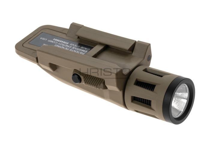 Kućište lampe izrađeno je od staklom ojačanog najlona, što osigurava iznimnu otpornost na udarce, vlagu i habanje, dok lagana konstrukcija omogućava udobno nošenje. Boja Dark Earth pridonosi nenametljivom, taktičkom izgledu.