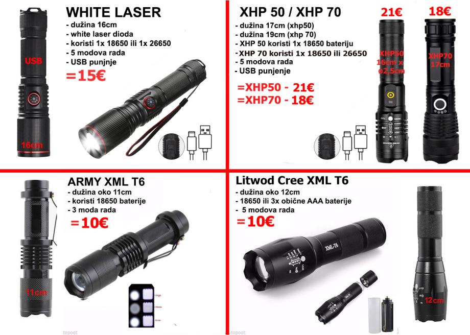 - 18650 BATERIJE NISU UKLJUČENE U CIJENU LAMPE!