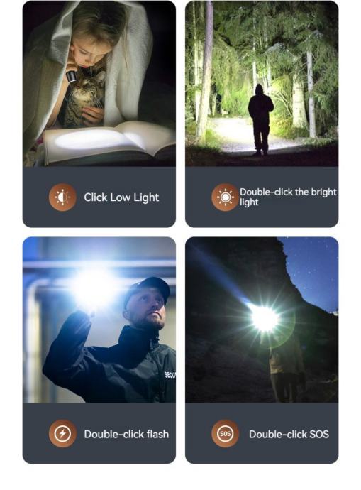 Svjetiljka ima 3 načina rada,normalni,teleskopski i SOS način...