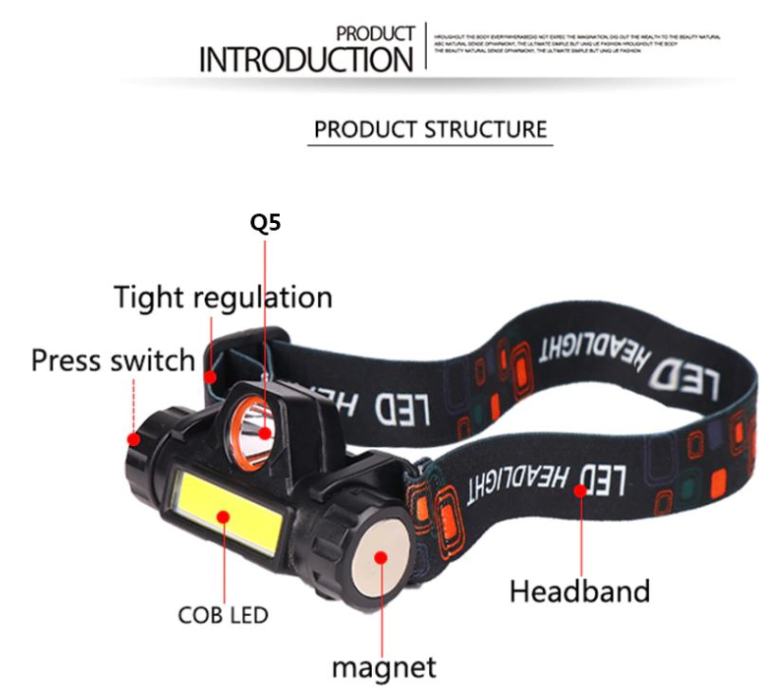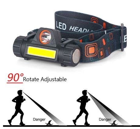 Svjetiljka naglavna LED COB+Q5 lampa lov kampiranje, ribolov, trčanje 18650 USB