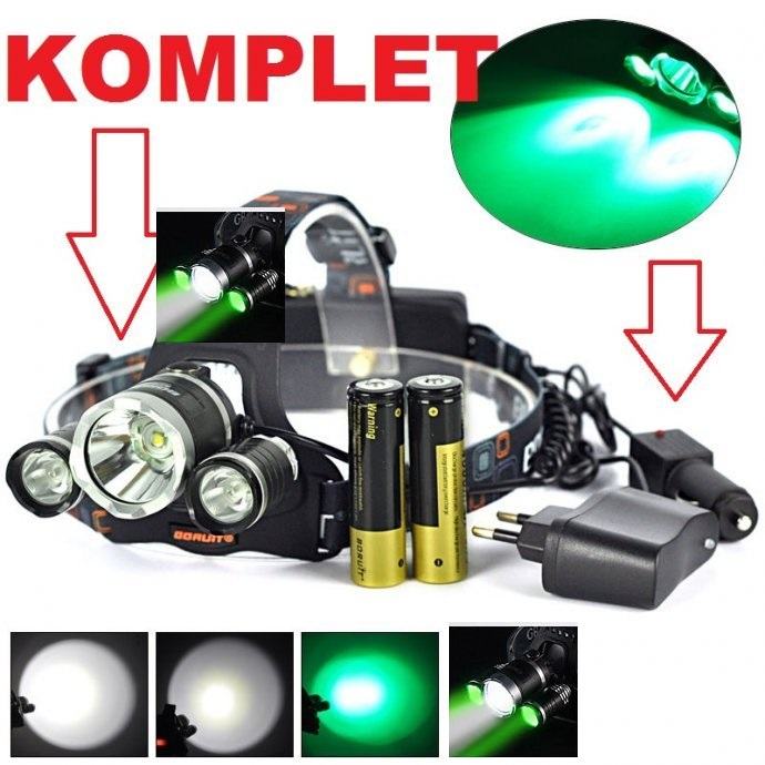Naglavna Lampa GRDE Bijela 5000LM + 2R2 Zelena svjetla IDEALNO za LOV.