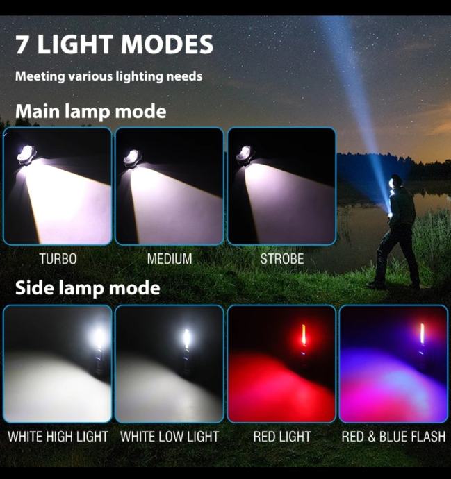 Svjetiljka ima čak 7 modusa rada, a u neprekidnom, srednjem-jakom modusu rada ima autonomiju rada od minimalno 3-5 sati !