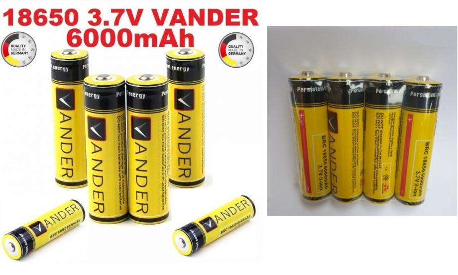 1xPunjiva baterija 18650 3.7V VANDER kapacitet baterija 6000mAh