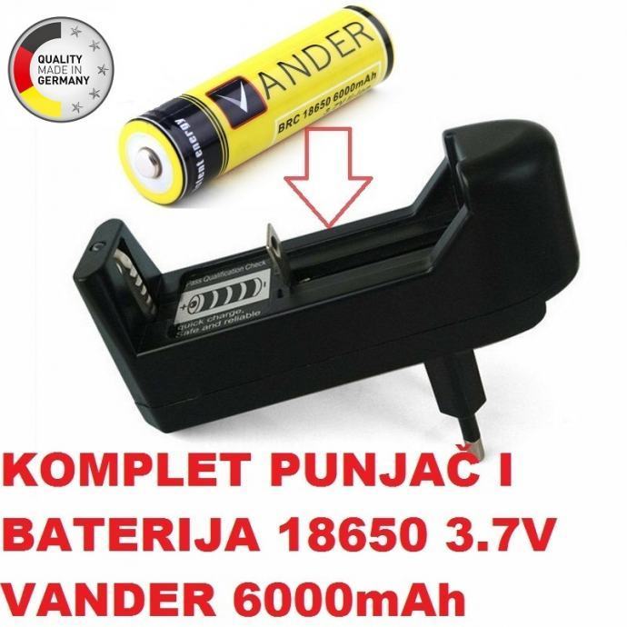 Baterija VANDER 18650 3.7V 6000mAh + PUNJAČ KOMPLET