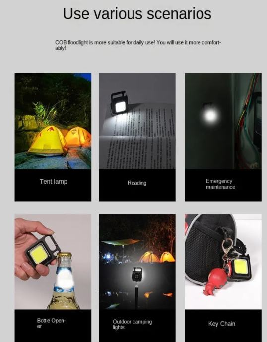 Višenamjenska COB radna svjetiljka USB punjiva svjetiljka za kampiranje na otvorenom, može se koristiti kao svjetla za hitne slučajeve,