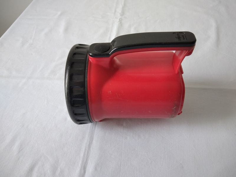 izuzetno kvalitetna, potpuno ispravna i bez oštećenja, ručna svjetiljka sa jakim snopom svjetlosti. Izvana ima manje tragove korištenja kako se vidi na slikama, a iznutra je kao nova što se također jasno vidi na slikama. Može se koristiti i za rad na otvorenom u svim vremenskim uvjetima (splash resistant). Sa njom se dobije i rezervna žarulja koja je tvornički ugrađena u unutrašnjosti kučišta – vidi se na jednoj slici. Glavna i rezervna žarulja su potpuno ispravne. Svjetiljka radi sa 6 standardnih velikih baterija od 1.5V (D size). Tel. 0976706184