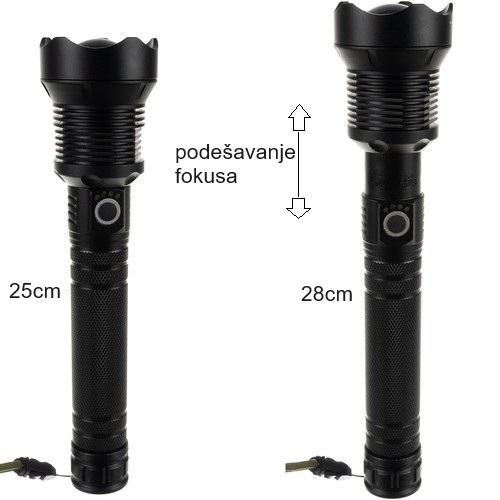 Svjetiljka s jakim svjetlom ima vrlo svijetli dugi reflektor, koristi modernu XH-P70 diodu, koja se može napajati iz raznih vrsta baterija, npr. alkalne, punjive ili litijeve ćelije. Snaga mu je do 4500 lumena.
