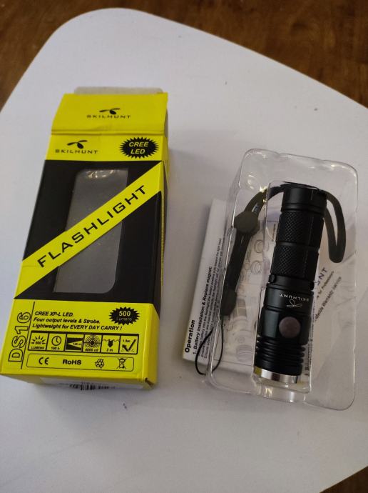 Nova ne korištena u original ambalaži led ručna svjetiljka,radi na jednu AA ili li-ion 14500 3,7v punjivu bateriju.