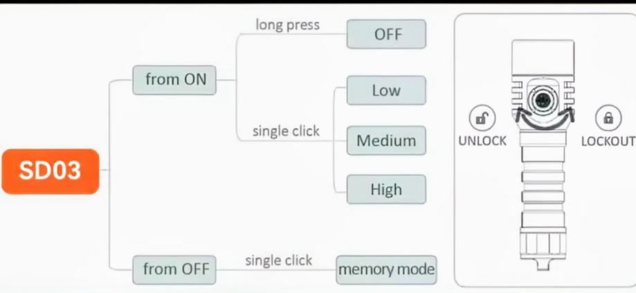 - Automatic Stepdown: Lampa će se polako prebaciti u niži način nakon 3 minute rada u visokom načinu rada da se spriječi pregrijavanje.