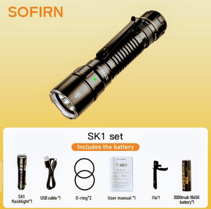 SOFIRN SK1 je napravljen za taktičku izvrsnost, s SFT-25R LED diodom koja pruža impresivnih 1300 lumena svjetline i domet snopa do 479 metara. Bilo da ste na terenu ili se suočavate s hitnim slučajem, ova svjetiljka osigurava vrhunsku vidljivost i pouzdanost.