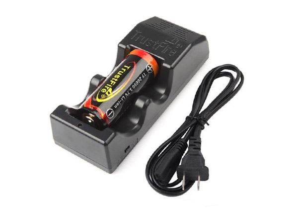 U kompletu dolaze : 1 x 26650 Trusfire baterija od 5000 mAh, punjač za baterije i futrola za ruku