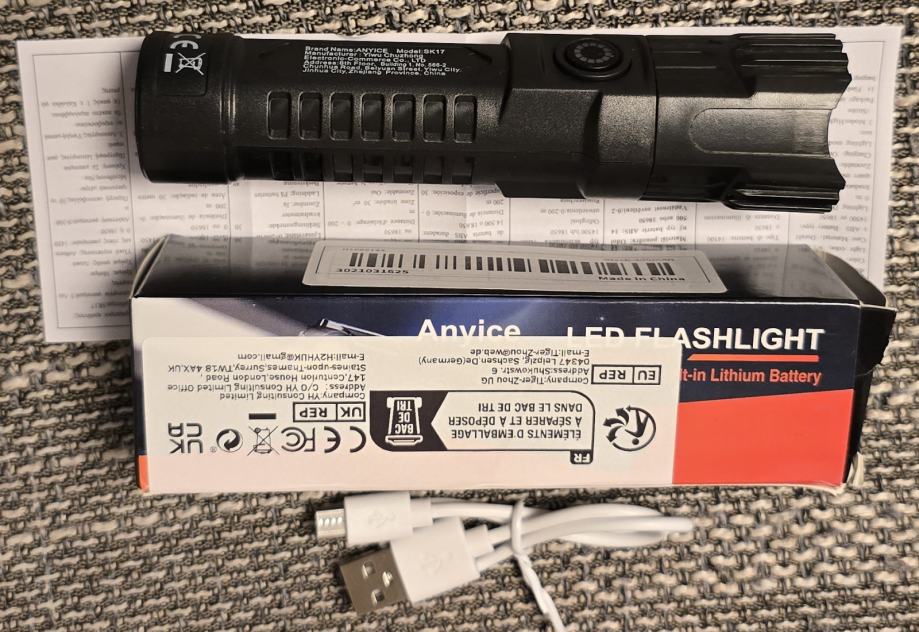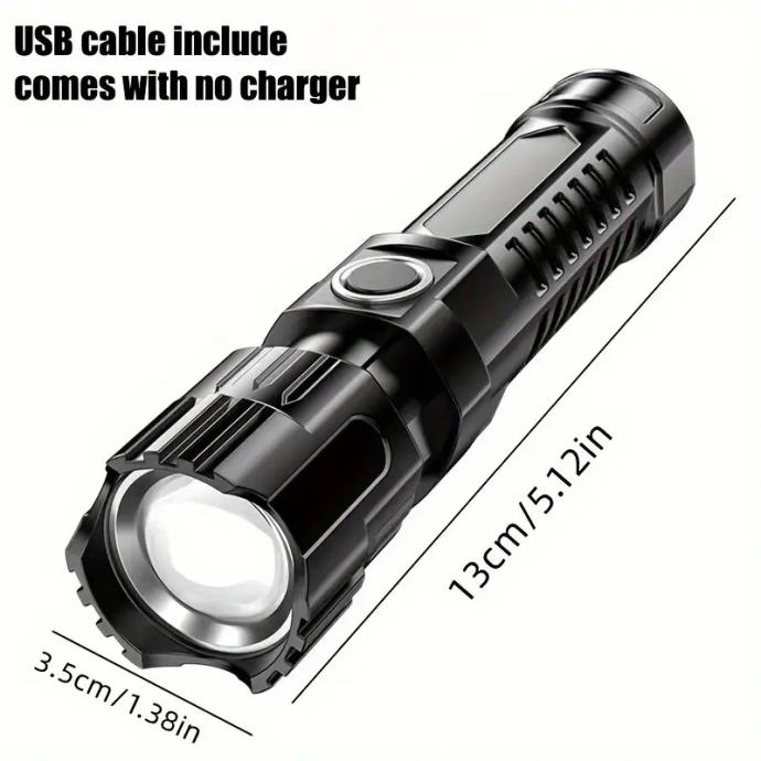 USB punjiva LED svjetiljka, super svijetla dugog dometa, sklopivi dizajn, prijenosna vanjska svjetlost za kampiranje i planinarenje, s USB kabelom, 1200mAh litij-ionska baterija, teleskopski fokus.