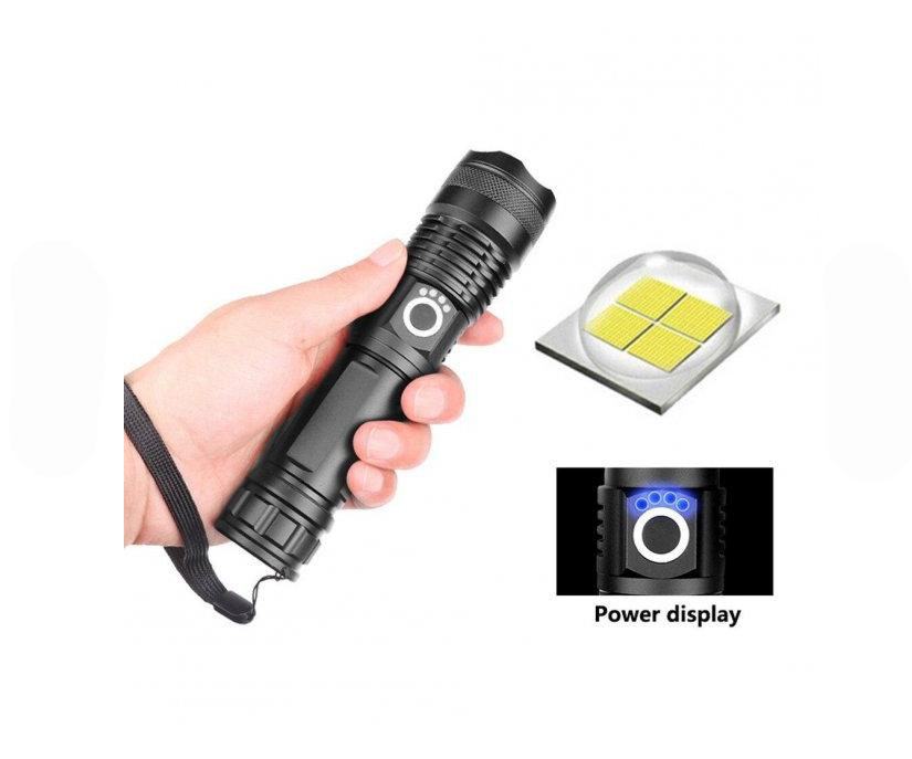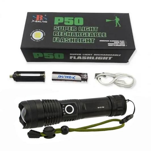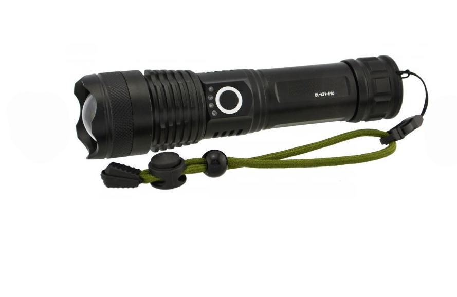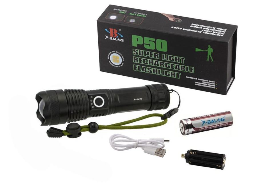 Taktička svjetiljka X-Balog BL-X71-P50 USB - C, zoom - ručna, punjiva, univerzalna, pogodna za svakodnevnu upotrebu i za planinarenje, lov, ribolov. Baterijska svjetiljka jako svijetli snažnim ujednačenim svjetlosnim tokom, domet joj je nekoliko stotina metara.