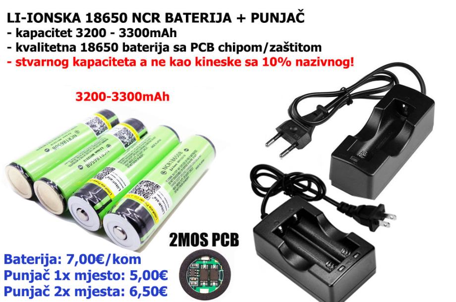- kvalitetna li-ionska 18650 baterija sa PCB zaštitom