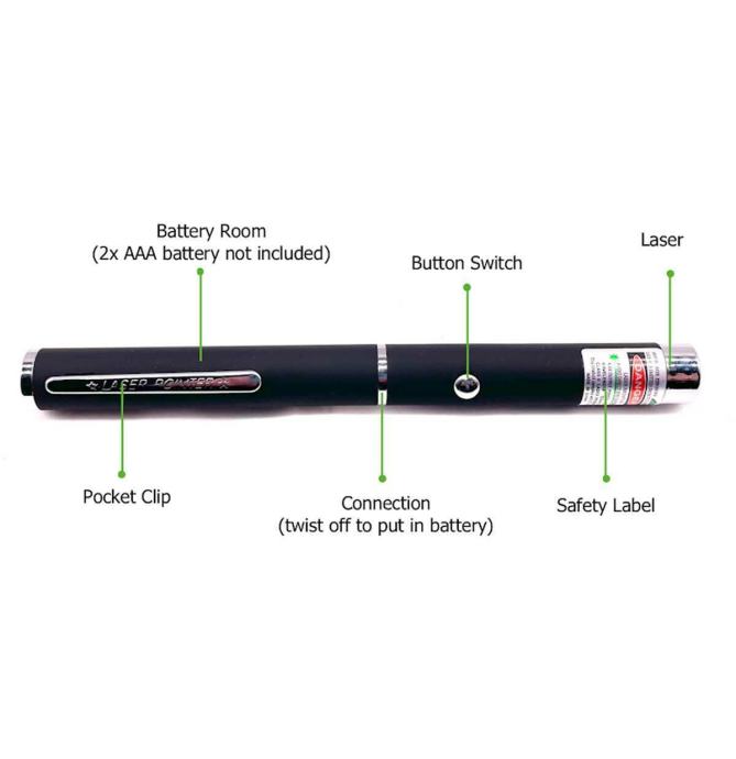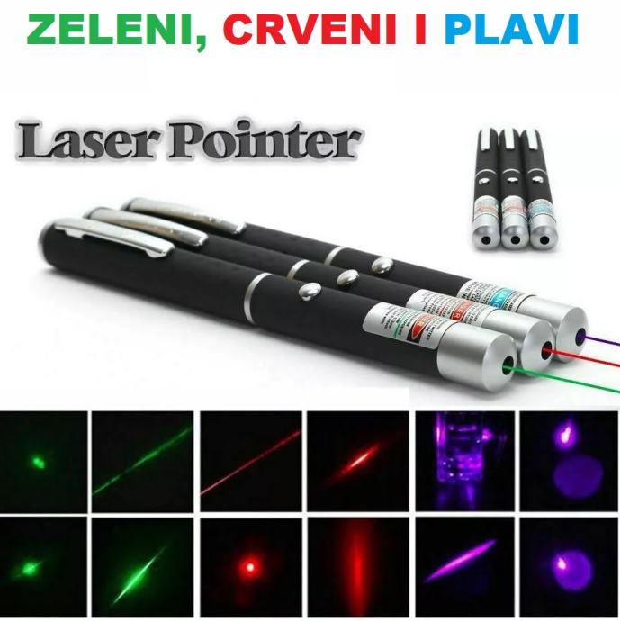 ZELENI, CRVENI ILI LJUBIČASTI LASER POINTER 5mW + ravna zelena crta na baterije AAA