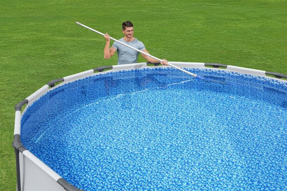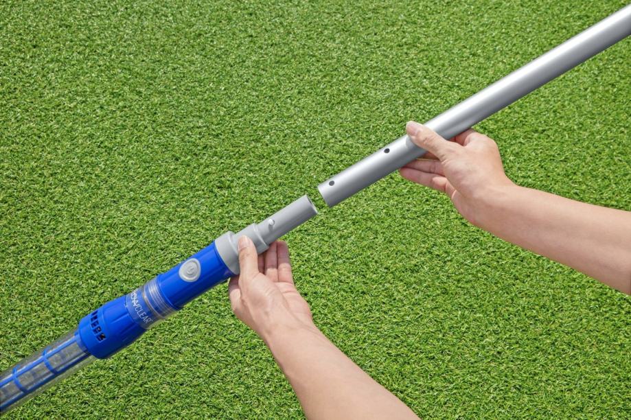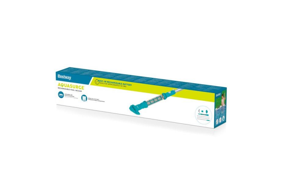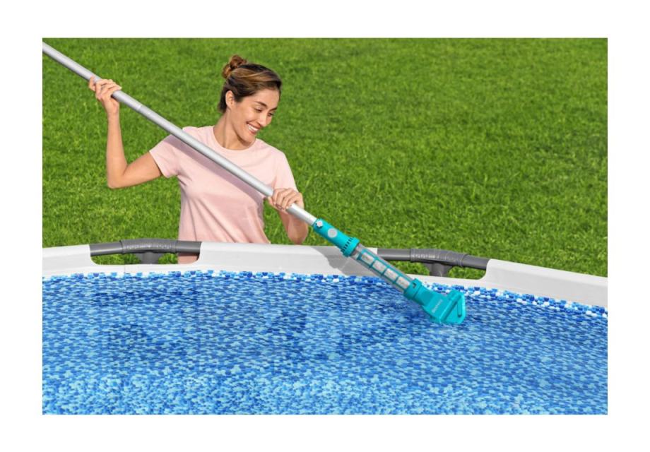 Uklonite probleme vezane za održavanje bazena zahvaljujuci punjivom usisavacu za bazen Bestway® AquaSurge™. Zahvaljujuci punjivoj bateriji koja se lako koristi, ne morate brinuti da ce žice smetati prilikom cišcenja prljavštine i onecišcenja s dna bazena. Ovaj usisavac može raditi do 50 minuta izmedu punjenja. Nakon upotrebe stavite ga na punjenje. Set ukljucuje dva zamjenjiva nastavka, koji ce vam omoguciti cišcenje kako glatkih stijenki, tako i kutova bazena. Obican pritisak na tipku cini cišcenje vrlo jednostavnim. Zahvaljujuci 3-dijelnoj cijevi, ovaj se usisavac može koristiti u bazenima do 6,10 m (20 stopa). Prozirni odjeljak za prljavštinu omogucuje vam da vidite kada ga treba isprazniti, tako da se može brzo i jednostavno dobiti zadivljujuce cist bazen. Kao dodatni bonus, drška se takoder može spojiti na vecinu skimmera ili cetkica (nisu ukljucene u set), tako da se može koristiti za višenamjensko cišcenje.