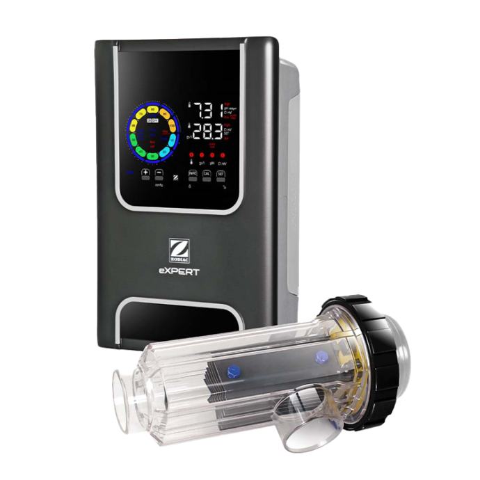 Zodiac eXPERT ima veliki, intuitivan zaslon osjetljiv na dodir koji omogućava jednostavno upravljanje parametrima i statusom vode. Uređaj neprestano mjeri kvalitetu vode i automatski prilagođava doziranje, čime se osigurava optimalna čistoća i sigurnost bazenske vode. Ima ugrađene napredne sigurnosne funkcije za zaštitu od predoziranja klora.