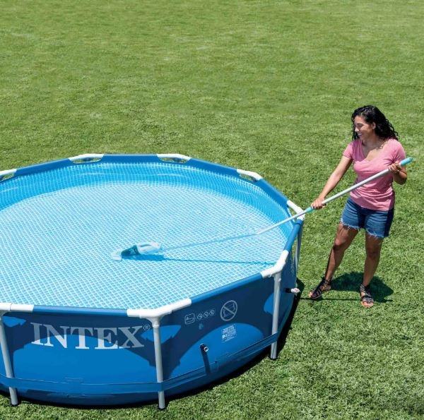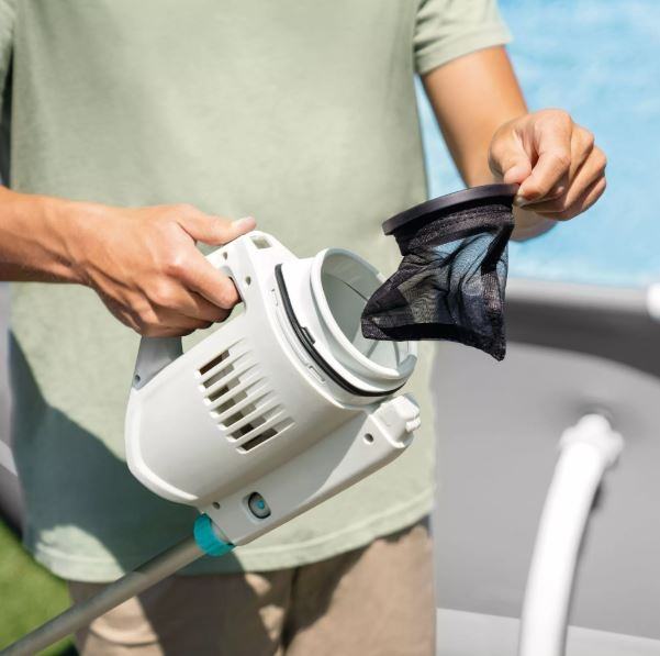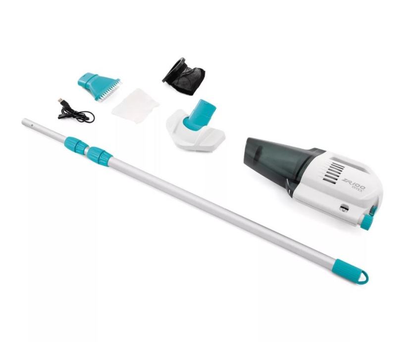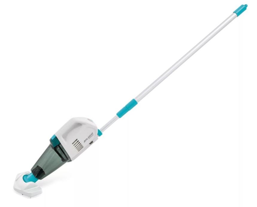 Usisavač za bazen je snažan bežični usisavač na baterije. Opremljen je vodootpornim prekidačem i praktičnim indikatorom razine baterije. Košara sa standardnim i mikro filter vrećicama olakšava usisavanje prljavštine i otpada, s vremenom rada do 50 minuta nakon 6-satnog punjenja s moćnim Ni-MH punjivim baterijama.Dugačka lagana aluminijska šipka 2,4 metraMreža za otpad se brzo prazniUključene 2 zamjenjive glave četkeUsisavač je također prikladan za spa bazeneFunkcija automatskog isključivanja ako usisavač nije pod vodomSnažne Ni-MH punjive baterije (kabel uključen)Pogodno za bazene promjera do 549 cmPrljavština se pohranjuje u maloj posudi usisavača, koja se zatim prazniTežina: 3,2 kg