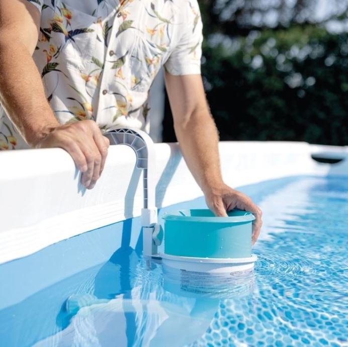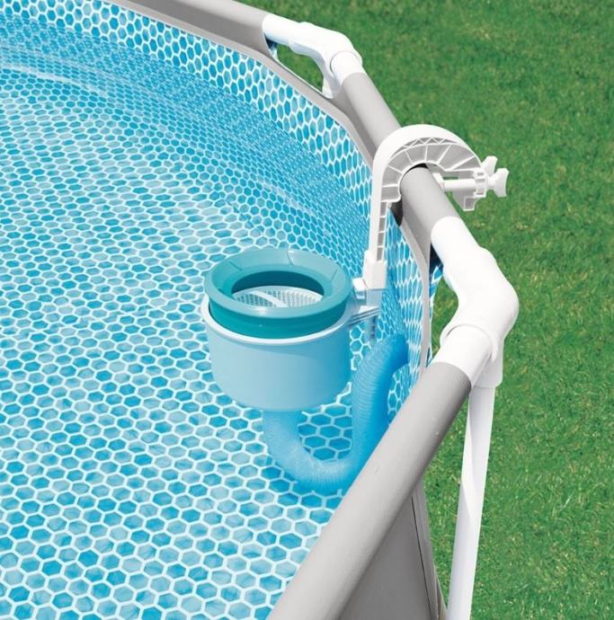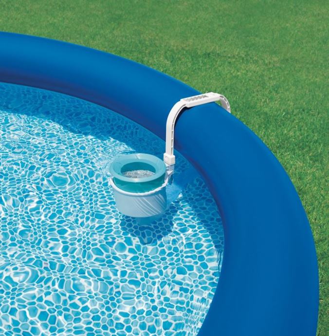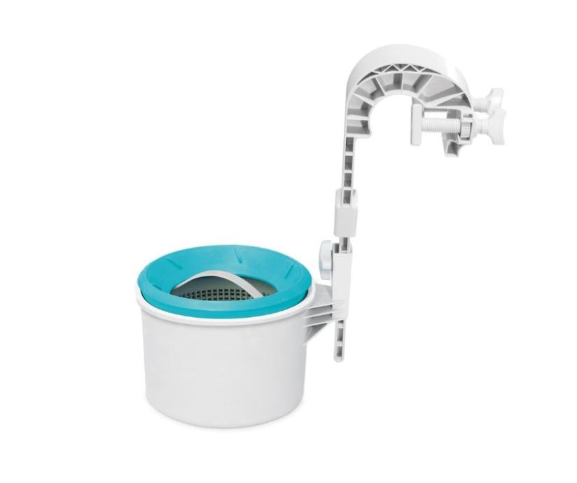 Intex skimmer čisti površinu vode u bazenu (lišće, travu, insekte). Priključimo ga na crpku Intex, koja prečišćava makar 3.028 litara vode na sat. Skimmer za bazen čisti površinu vode prije no što prljavština dotakne dno bazena. Moguća uporaba na bazenima sa rubom na napuhavanje, ali i na metal frame modelima. Unutarnju košaricu lako odstranimo i ispraznimo prljavštinu. Prije uporabe pročitajte upute. Kad je skimmer uključen, ne preporučujemo uporabu bazena. Paket posjeduje sve potrebno za montiranje i momentalnu uporabu. Težina 1,90 kg