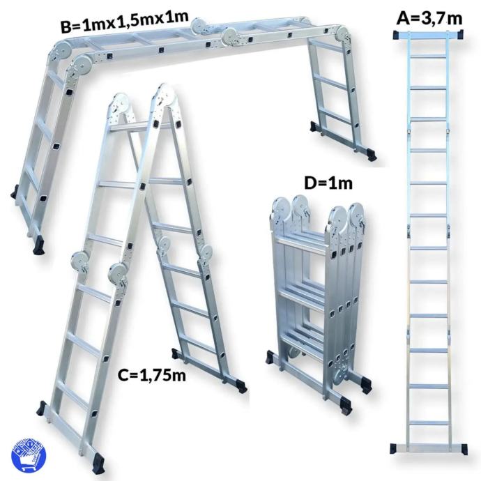 IZDRŽLJIVE I SNAŽNE – Izrađene od visokokvalitetnog aluminija debljine 1,5 mm, ove ljestve su ultra lagane, ali izuzetno čvrste i otporne na hrđu. Dosežu visinu do 3,7 metara, pružajući vam maksimalnu fleksibilnost u radu.