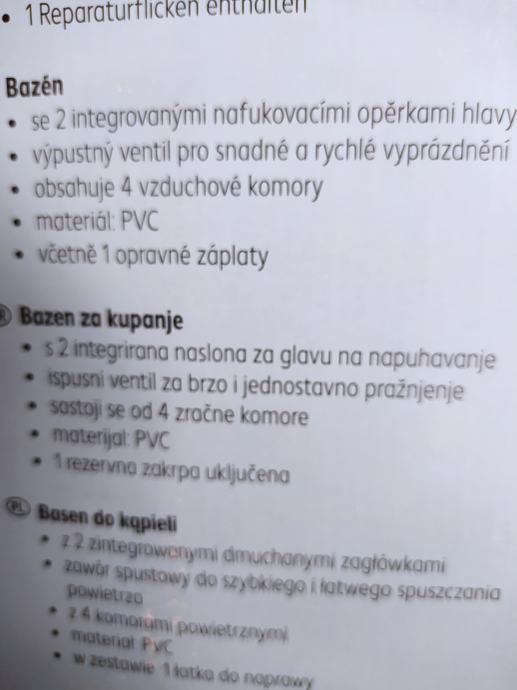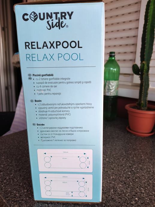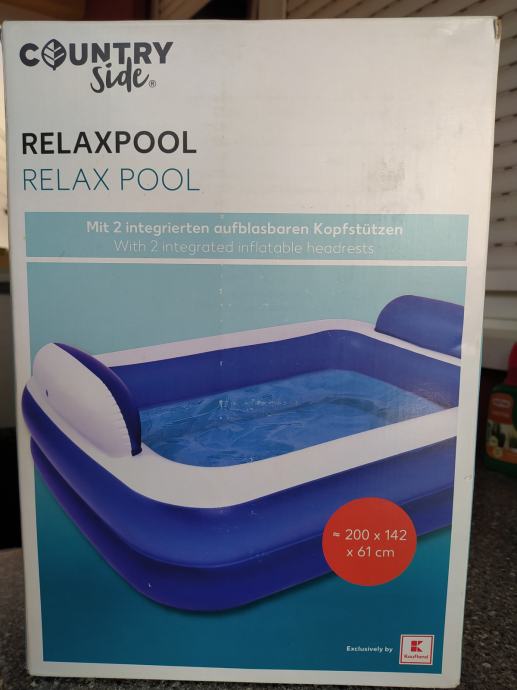 Bazen na napuhavanje veličine 200x142x61 cm. Ima dva integrirana naslona za glavu, ispusni ventil za brzo i jednostavno pražnjenje, četiri zračne komore. Materijal je PVC.
