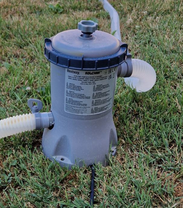 Uz njega dolazi filter za vodu i prekrivač za bazen da ne upada prljavština u bazen kada se ne koristi.