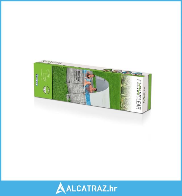- Kompatibilna je s bazenima pravokutnog i ovalnog okvira širine obiju strana između 2,1 m i 3,4 m