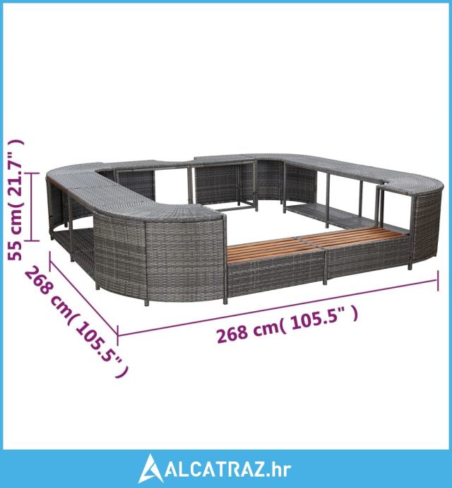 Četvrtasta ograda za vruću kupku siva 268x268x55 cm poliratan - NOVO