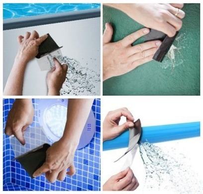 Za popravak svih vrsta bazenskih folija PE, PVC ili drugih sličnih materijala.