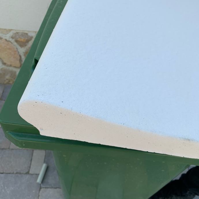 Kamen za rub bazena 3-5 cm bijele boje isporuka na lice mjesta od Dubrovnika do Splita , duzni metar 70 Eura , plus Kutevi 105 Eura po komadu , dostava 200 e po isporuci za jedan bazen ili preuzimanje u Baćini . Cijena za bazen 8 x 4 m