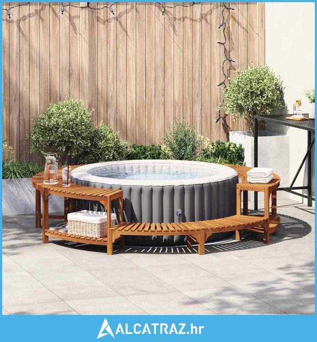 Ovo okruženje za vruće kade je trendy i praktičan dodatak svakom vanjskom prostoru, savršeno se uklapa oko tvoje vruće kade i stvara privlačno mjesto za opuštanje. Napravljeno od čvrstog bagremovog drveta, ovo okruženje je otporno i nudi predivnu prirodnu teksturu. Osim što djeluje kao zaštita, poboljšava i cjelokupni izgled tvoje vanjske površine. Suvremen dizajn se lijepo uklapa u različite stilove, idealno za one koji žele spojiti udobnost i moderni dizajn.