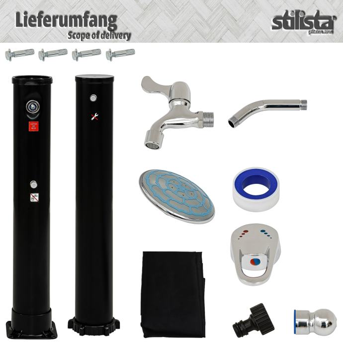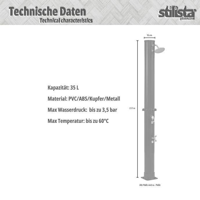 Solarni tuš STILISTA izrađen je od plastike otporne na UV zračenje i nadopunjuje vaš vrt, terasu ili bazen