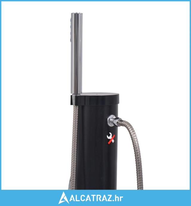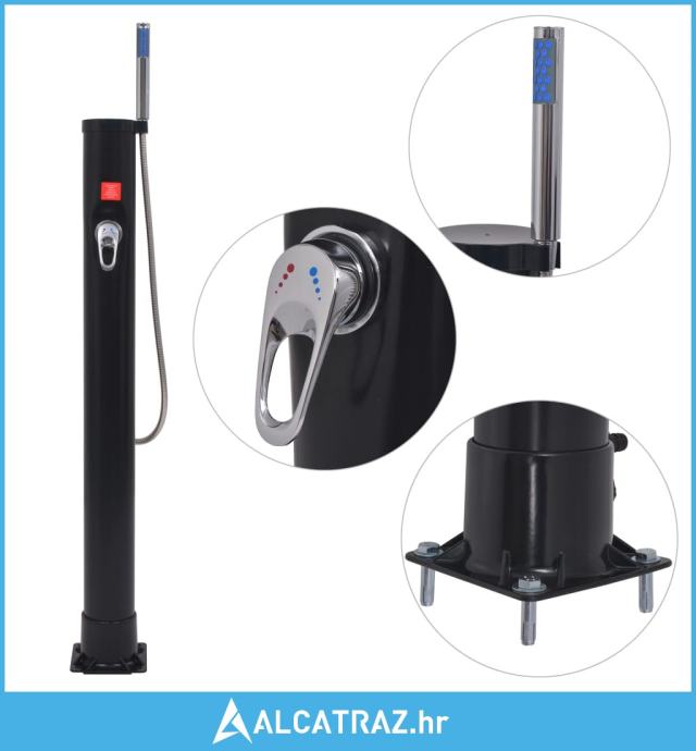 Solarni tuš je jednostavan za korištenje. Lako možete podesiti temperaturu vode okretanjem ručke. Opremljen je ručnom glavom tuša i fleksibilnim crijevom. Zahvaljujući visokokvalitetnoj čeličnoj bazi i uključenim pričvršćivačima, ovaj solarni tuš se može fiksirati u zemlju.