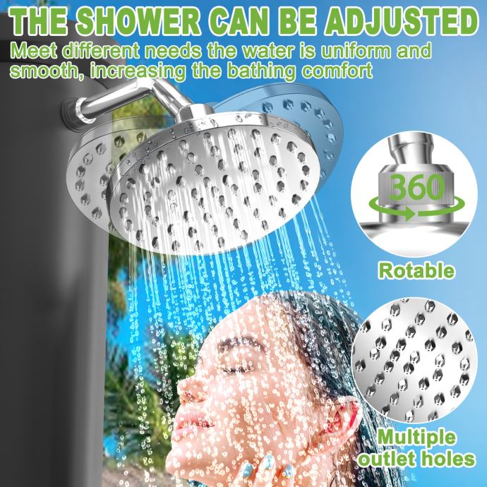 ☀️ Velika glava tuša s efektom kiše i kuglastim zglobom (rotirajuća za 360°)