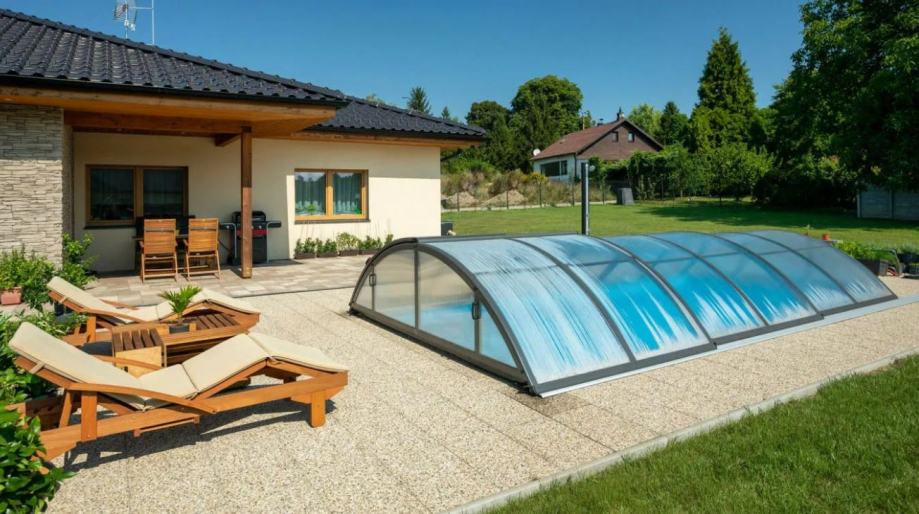 Kupola poboljšava sigurnost Vašeg bazena. Djeca ili kućni ljubimci ne mogu slučajno pasti u vodu kad je kupola zatvorena.
