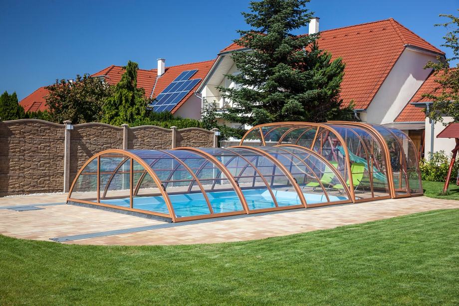 Pomične kupole za bazene izrađene su od aluminija i polikarbonata te tako čine čvrstu a laganu strukturu sa elegantnom notom dizajnerskog izražaja. Kako je cilj produženje sezone i popunjavanje ponude u zimskim mjesecima ovaj dio opreme za bazene je postao neizostavan svatkome tko se ozbiljno bavi i proaktivno poslovno razmišlja o turističkoj sezoni. Vrlo su lake i jednostavne za rukovanje tako da u trenu bazen možete prakriti sa kupolom i u trenu otvoriti. Kupole imaju višestruku namjenu pa tako i koriste kao zaštita od prljavštine i raznih vanjskih utjecaja pa tako štite vodu od raznih vanjskih nečistoća što pridonosi uštedi filtracije vode i čišćenja bazena.