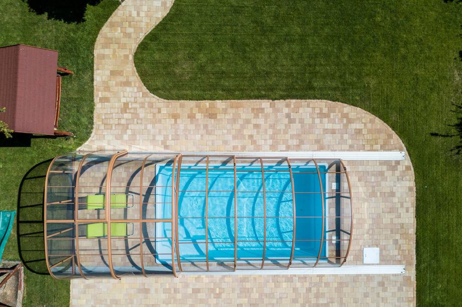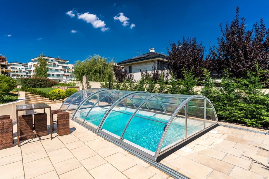Pomične kupole za bazene izrađene su od aluminija i polikarbonata te tako čine čvrstu a laganu strukturu sa elegantnom notom dizajnerskog izražaja. Kako je cilj produženje sezone i popunjavanje ponude u zimskim mjesecima ovaj dio opreme za bazene je postao neizostavan svatkome tko se ozbiljno bavi i proaktivno poslovno razmišlja o turističkoj sezoni. Vrlo su lake i jednostavne za rukovanje tako da u trenu bazen možete prakriti sa kupolom i u trenu otvoriti. Kupole imaju višestruku namjenu pa tako i koriste kao zaštita od prljavštine i raznih vanjskih utjecaja pa tako štite vodu od raznih vanjskih nečistoća što pridonosi uštedi filtracije vode i čišćenja bazena.