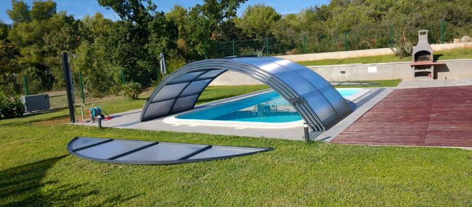 Pomične kupole za bazene izrađene su od aluminija i polikarbonata te tako čine čvrstu a laganu strukturu sa elegantnom notom dizajnerskog izražaja. Kako je cilj produženje sezone i popunjavanje ponude u zimskim mjesecima ovaj dio opreme za bazene je postao neizostavan svatkome tko se ozbiljno bavi i proaktivno poslovno razmišlja o turističkoj sezoni. Vrlo su lake i jednostavne za rukovanje tako da u trenu bazen možete prakriti sa kupolom i u trenu otvoriti. Kupole imaju višestruku namjenu pa tako i koriste kao zaštita od prljavštine i raznih vanjskih utjecaja pa tako štite vodu od raznih vanjskih nečistoća što pridonosi uštedi filtracije vode i čišćenja bazena.