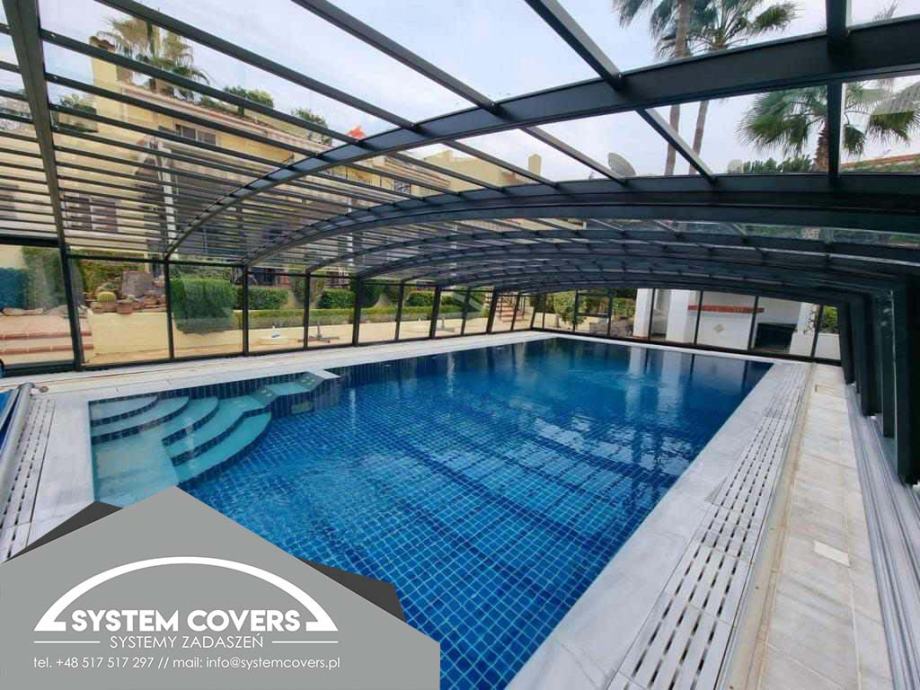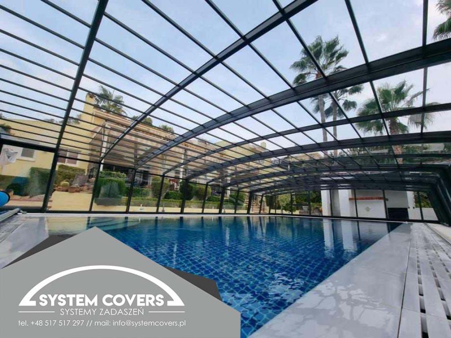 Pokrovi za bazene System Covers izrađeni su od aluminijskih profila i masivnog, prozirnog polikarbonata. Najviša kvaliteta izrade jamči visoku otpornost na mehanička oštećenja i promjenjive vremenske uvjete. Pokrovi su novi i izrađuju se prema specifikacijama kupca u našoj tvornici u Poljskoj.