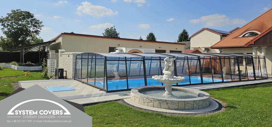 Pokrovi za bazene System Covers izrađeni su od aluminijskih profila i masivnog, prozirnog polikarbonata. Najviša kvaliteta izrade jamči visoku otpornost na mehanička oštećenja i promjenjive vremenske uvjete. Pokrovi su novi i izrađuju se prema specifikacijama kupca u našoj tvornici u Poljskoj.