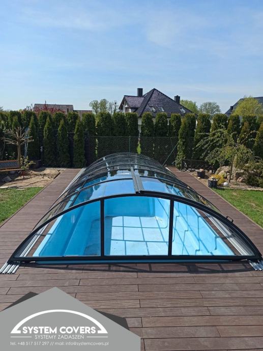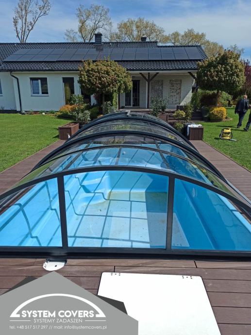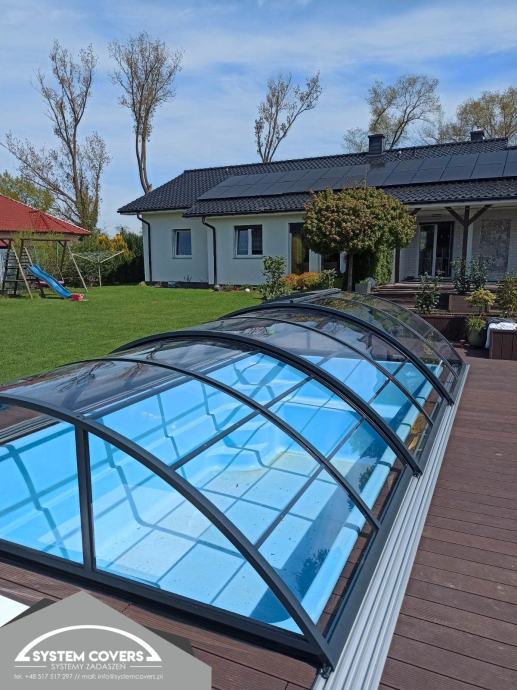 System Covers pool enclosures are made of aluminum profiles and solid, clear polycarbonate. The highest processing quality ensures high resistance to mechanical damage and changing weather conditions. The roofs are new and are made in Poland according to customer specifications.