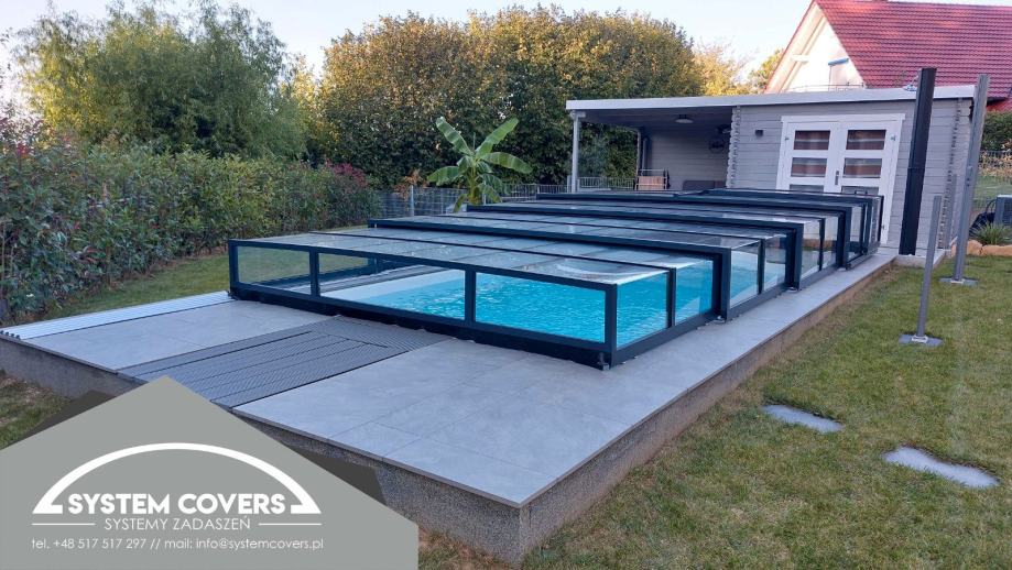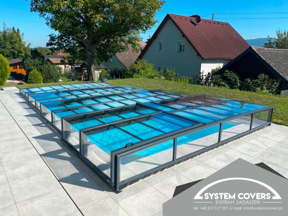 System Covers pool enclosures are made of aluminum profiles and solid, clear polycarbonate. The highest processing quality ensures high resistance to mechanical damage and changing weather conditions. The roofs are new and are made in Poland according to customer specifications.