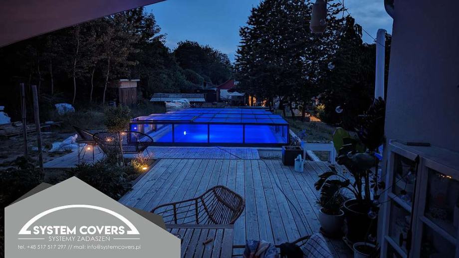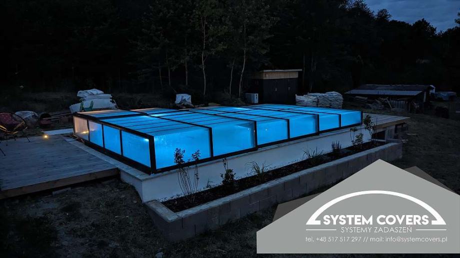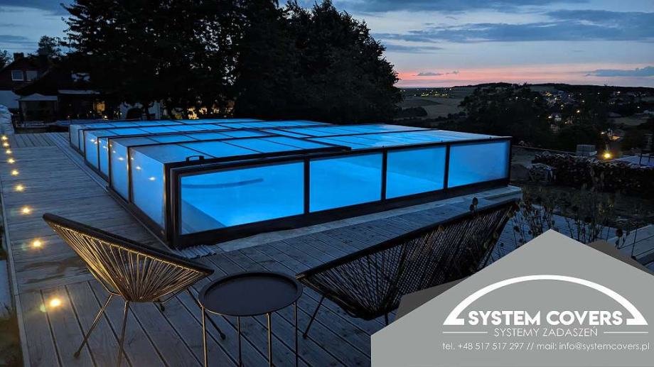 System Covers pool enclosures are made of aluminum profiles and solid, clear polycarbonate. The highest processing quality ensures high resistance to mechanical damage and changing weather conditions. The roofs are new and are made in Poland according to customer specifications.