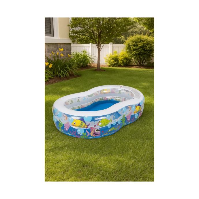 Sanjaju li vaša djeca o uživanju u vrućim ljetnim danima u bazenu? S ovim bazenom, to može postati stvarnost. Bazen s motivom ribica izrađen je od visokokvalitetne plastike i dimenzija 175x109x46 cm. Dvije zračne komore osiguravaju stabilnost. Pripremite se za ljeto s ovim prekrasnim bazenom namijenjenim djeci!