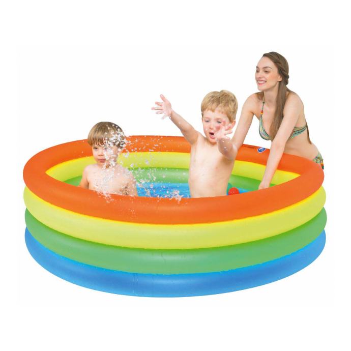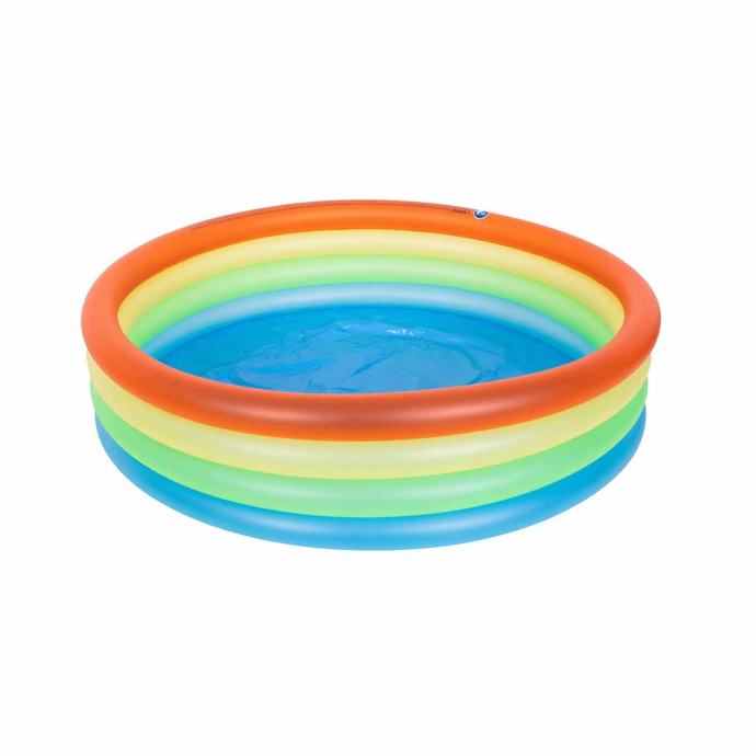 Ovaj visokokvalitetni bazen u veselom, šarenom dizajnu, idealan je za djecu od 2 do 6 godina. Četiri zračne komore, neonske boje, privući će pažnju svih malih ljubitelja vode. Savršen bazen za brčkanje i rashlađivanje za vrućih ljetnih dana u vrtu, na terasi ili u kampu.