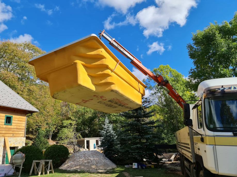 Cijena ukljucuje bazen , opremu , dostavu do kupca , montazu i PDV. Kupac organizira i placa dizalicu.