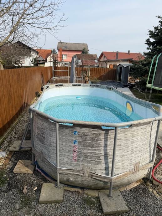 Prodajem Bestway bazen Power Steel Vista (427 x 250 x 100 cm). Trenutno je napunjen vodom i moze se pogledati.