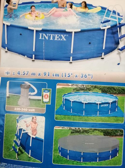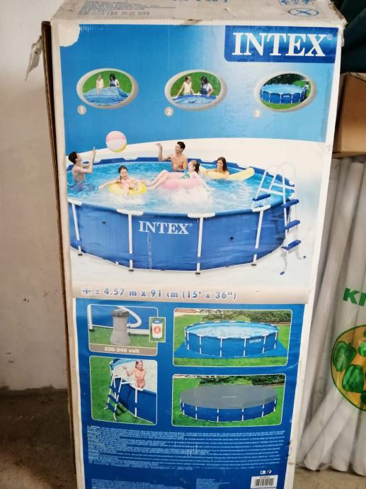 Bazen Intex 4,57 x 91cm nekoristen kompletan. Bazen je jedanput napunjen vodom radi probe te nakon toga nije koristen