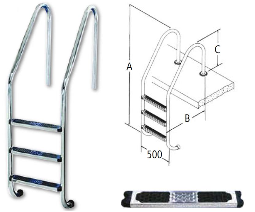 Ljestve od inoksa sa gumiranim sirokim gazistima .